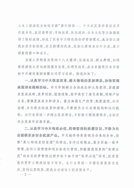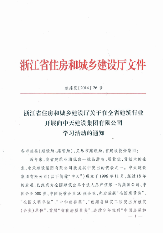 《浙江省住房和城乡建设厅关于在全省建筑行业开展向PG建设集团有限公司学习活动的通知》